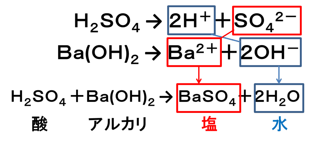 以上が学校の定期テストで出題される中和の化学反応式でした。
