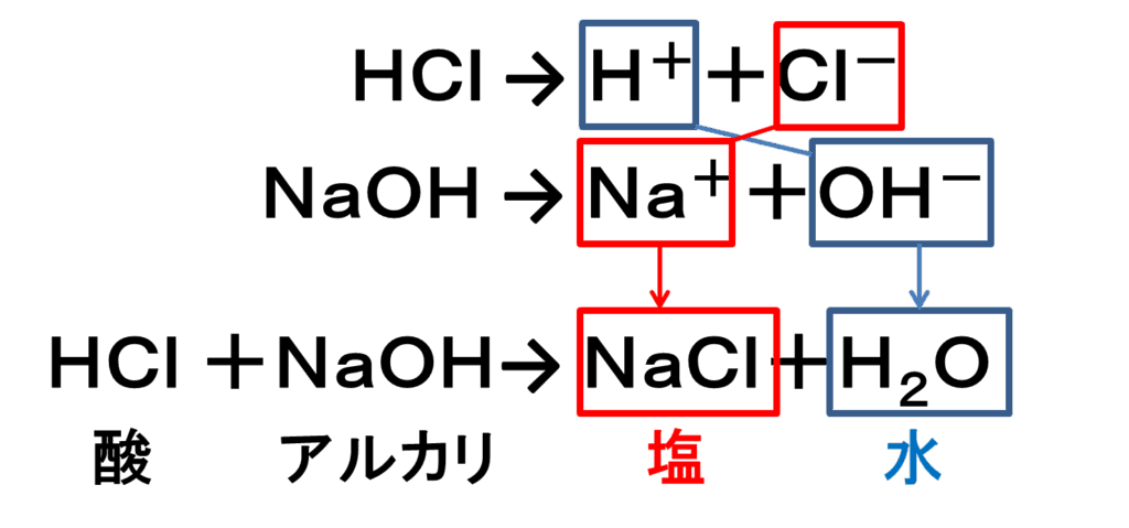これが塩酸と水酸化ナトリウムの中和の化学反応式です!